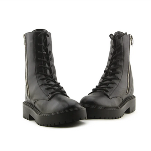 Stradivarius Zipper Laces Combat Ankle Boots | 100% Authentic Leather
