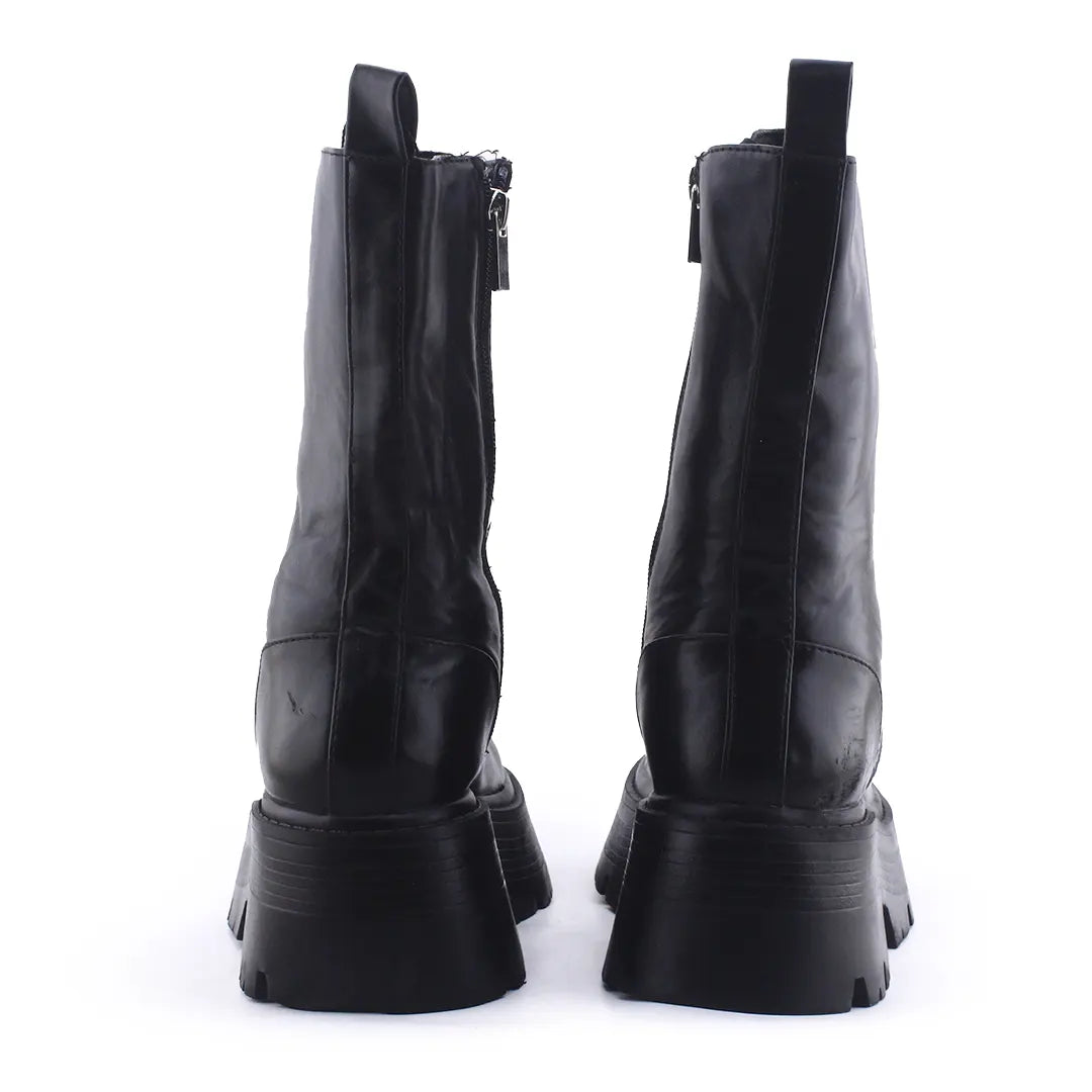 Stradivarius Zipper Laces Combat Ankle Boots | 100% Authentic Leather