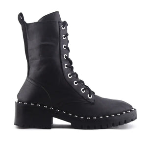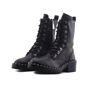 Stradivarius Zipper Laces Combat Ankle Boots | 100% Authentic Leather