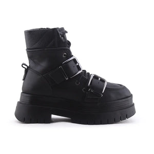 Bershka Zipper Lace Up Buckle Strap Ankle Boot | 100% Authentic Leather