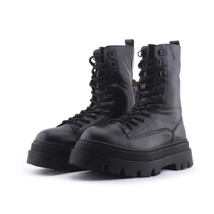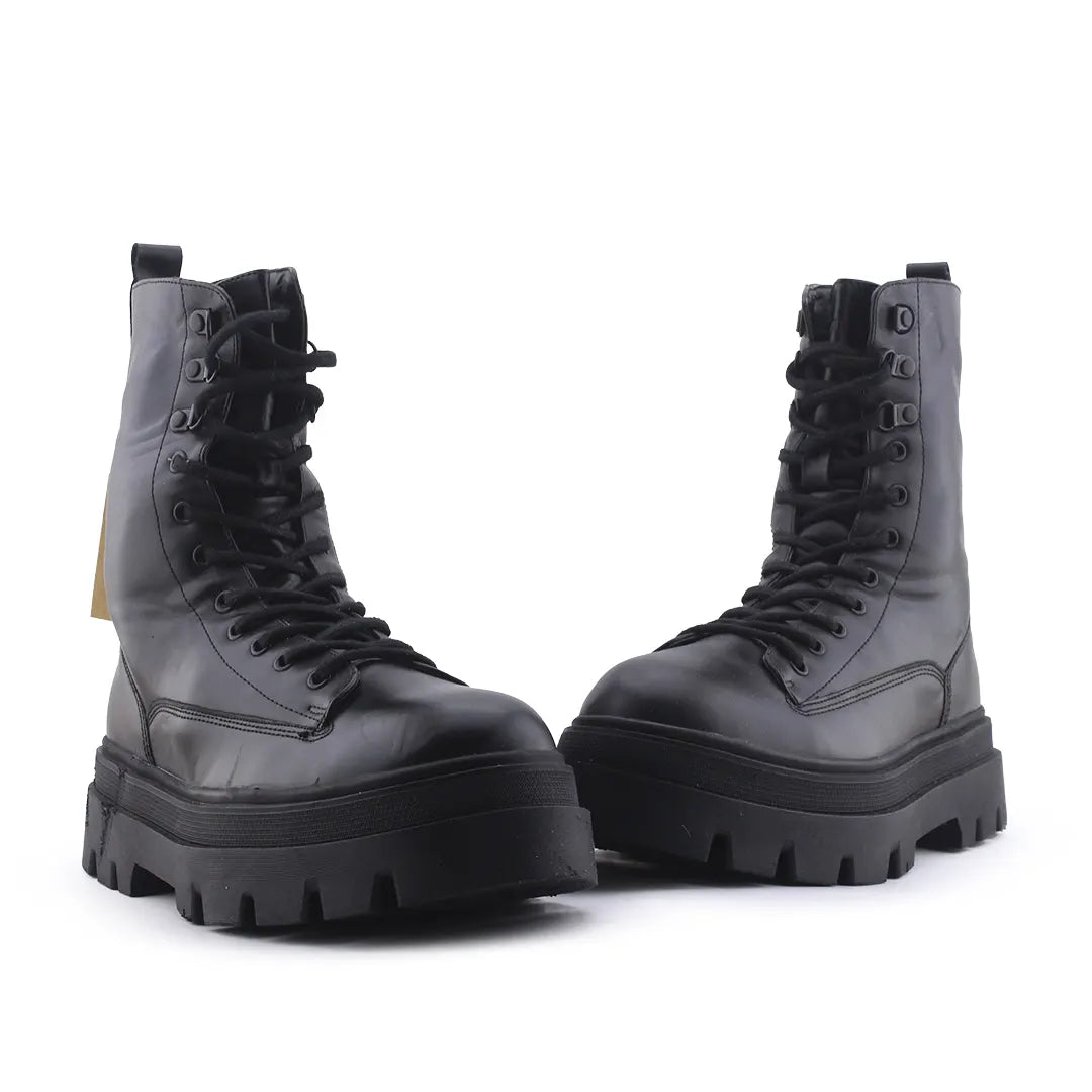 Stradivarius Zipper Laces Combat Ankle Boots | 100% Authentic Leather