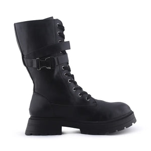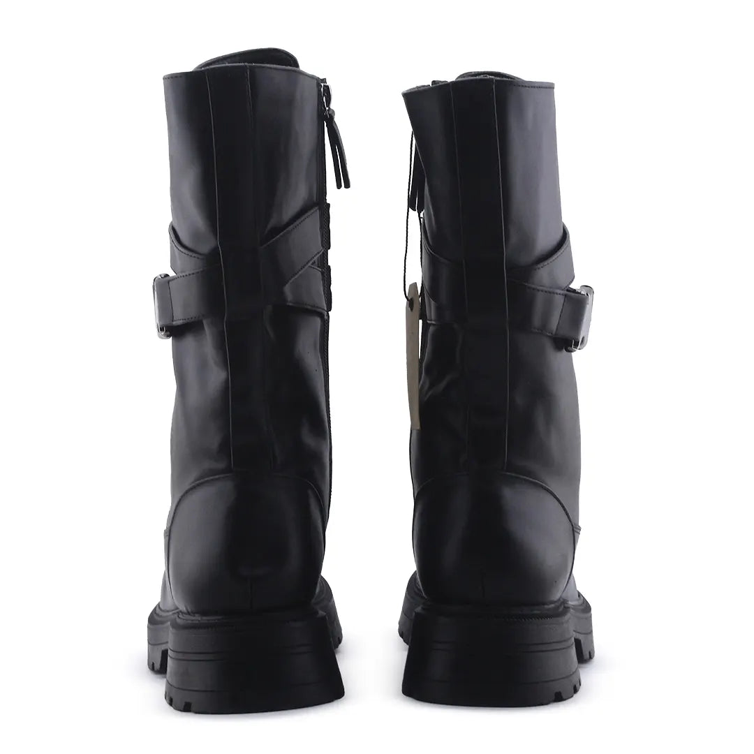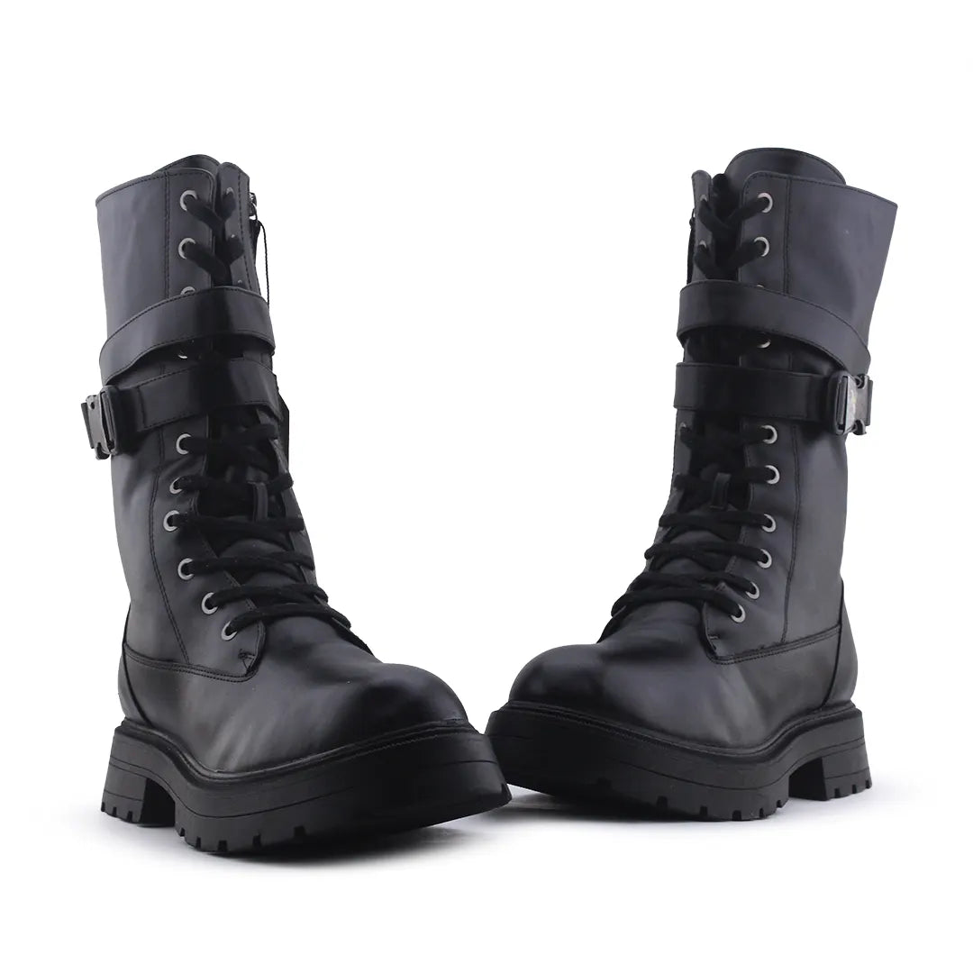 Bershka Zipper Buckle Strap Lace Up Ankle Boot | 100% Authentic Leather