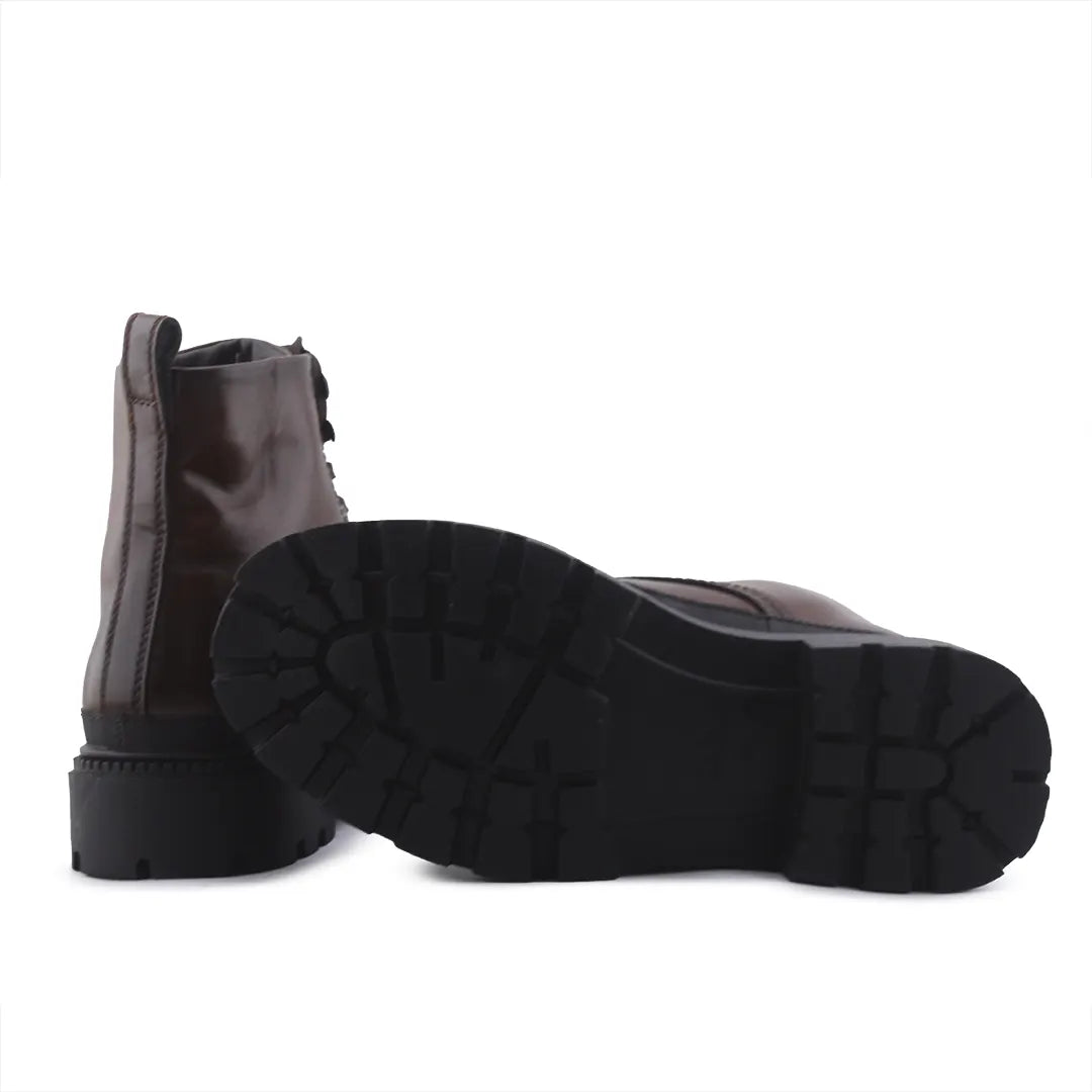 Stradivarius Zipper Laces Combat Ankle Boots | 100% Authentic Leather