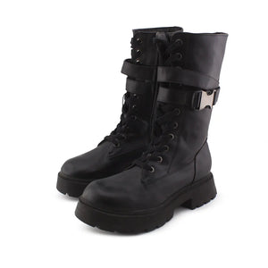 Stradivarius Zipper Laces Combat Ankle Boots | 100% Authentic Leather
