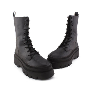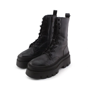 Stradivarius Zipper Laces Combat Ankle Boots | 100% Authentic Leather