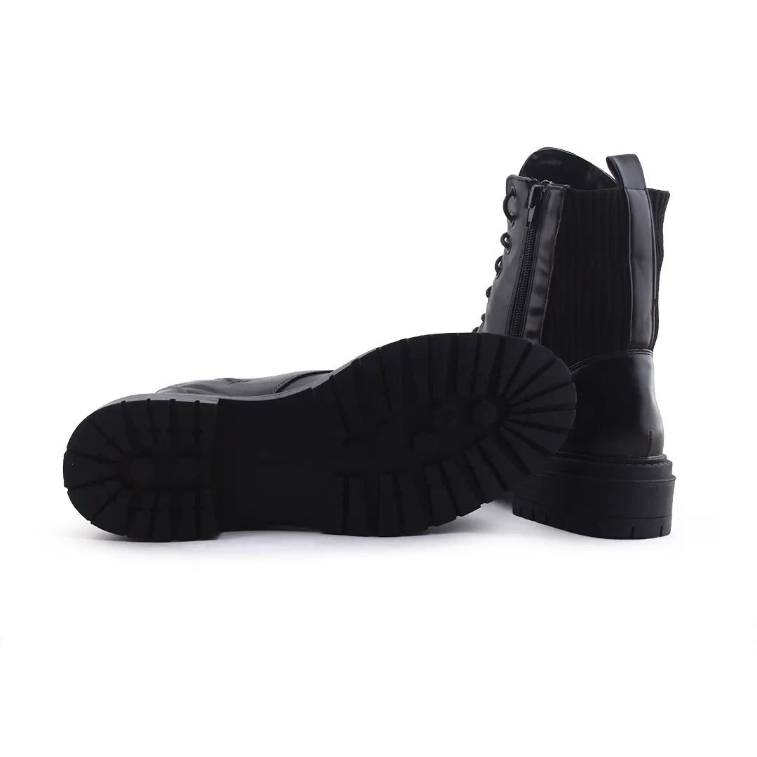 Stradivarius Zipper Laces Combat Ankle Boots | 100% Authentic Leather