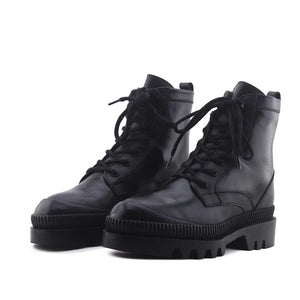 Stradivarius Zipper Laces Combat Ankle Boots | 100% Authentic Leather
