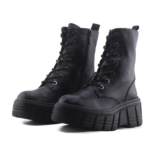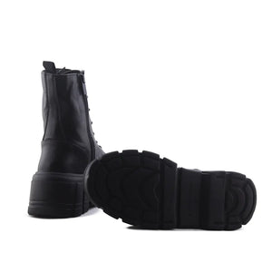 Stradivarius Zipper Laces Combat Ankle Boots | 100% Authentic Leather