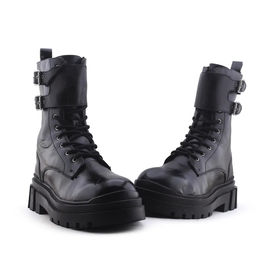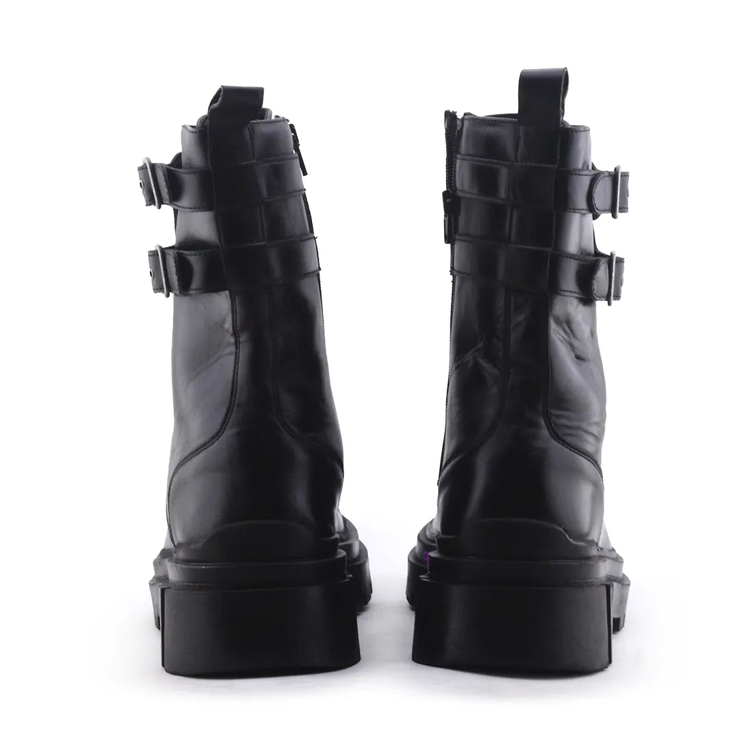 Bershka Zipper Lace Up Buckle Strap Ankle Boot | 100% Authentic Leather