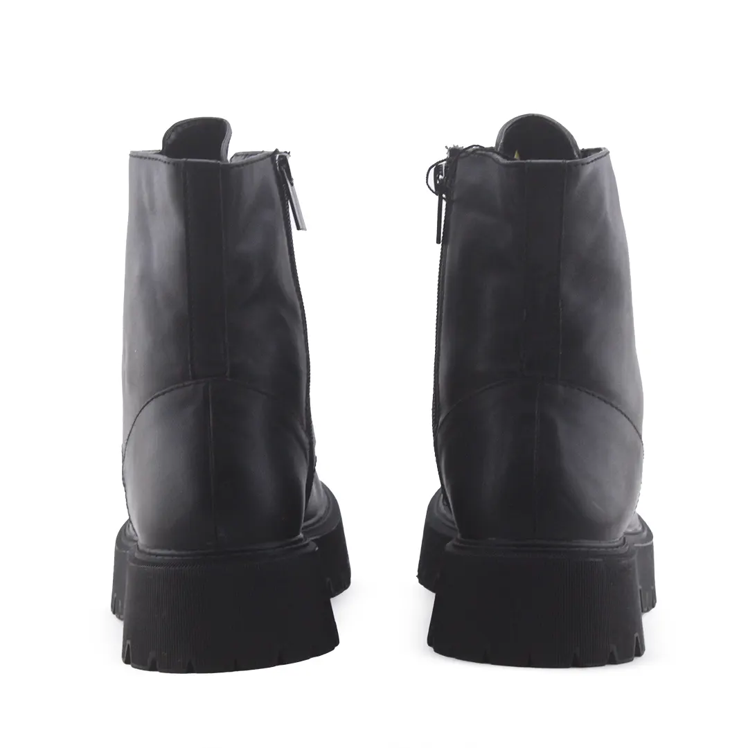 Stradivarius Zipper Laces Combat Ankle Boots | 100% Authetic Leather