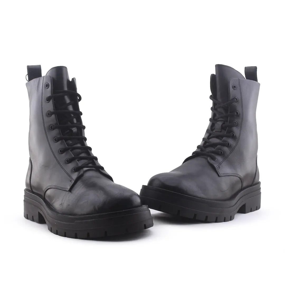 Stradivarius Zipper Laces Combat Ankle Boots | 100% Authentic Leather