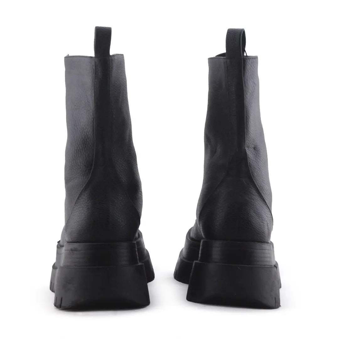Stradivarius Zipper Laces Combat Ankle Boots | 100% Authentic Leather