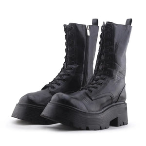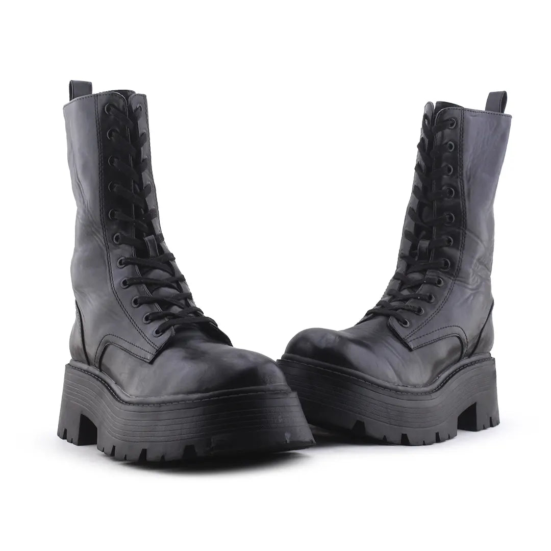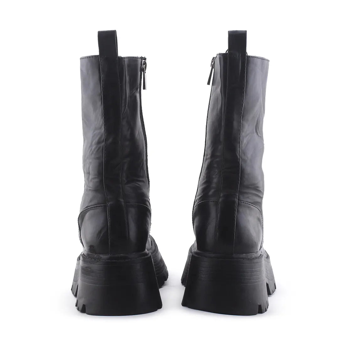 Stradivarius Zipper Laces Combat Ankle Boots | 100% Authentic Leather