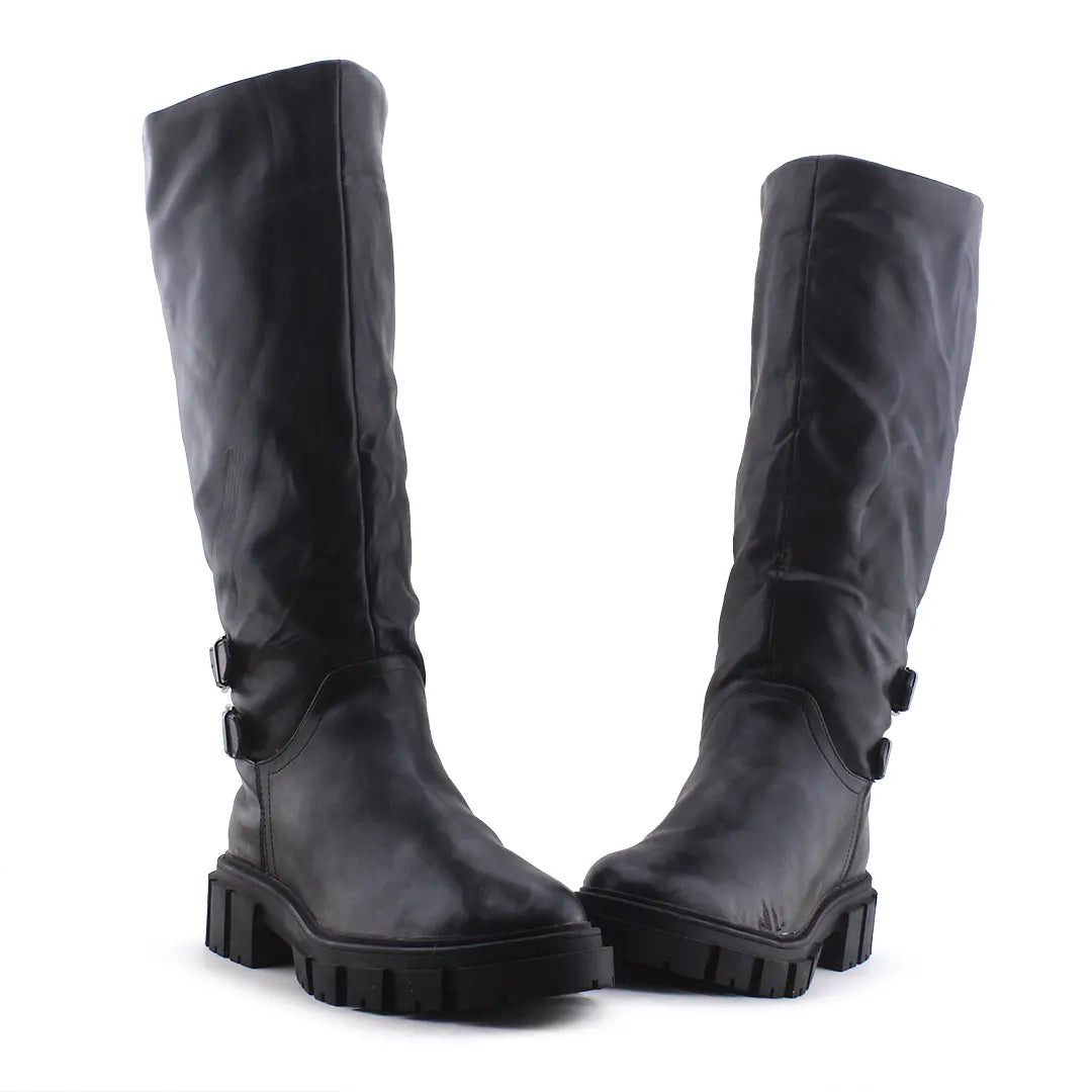 Stradivarius Zipper Buckle Strap Knee High Boot | 100% Authentic Leather