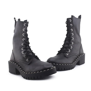 Zara Zipper Lace Up Combat Ankle Boots (100% Authentic Leather)