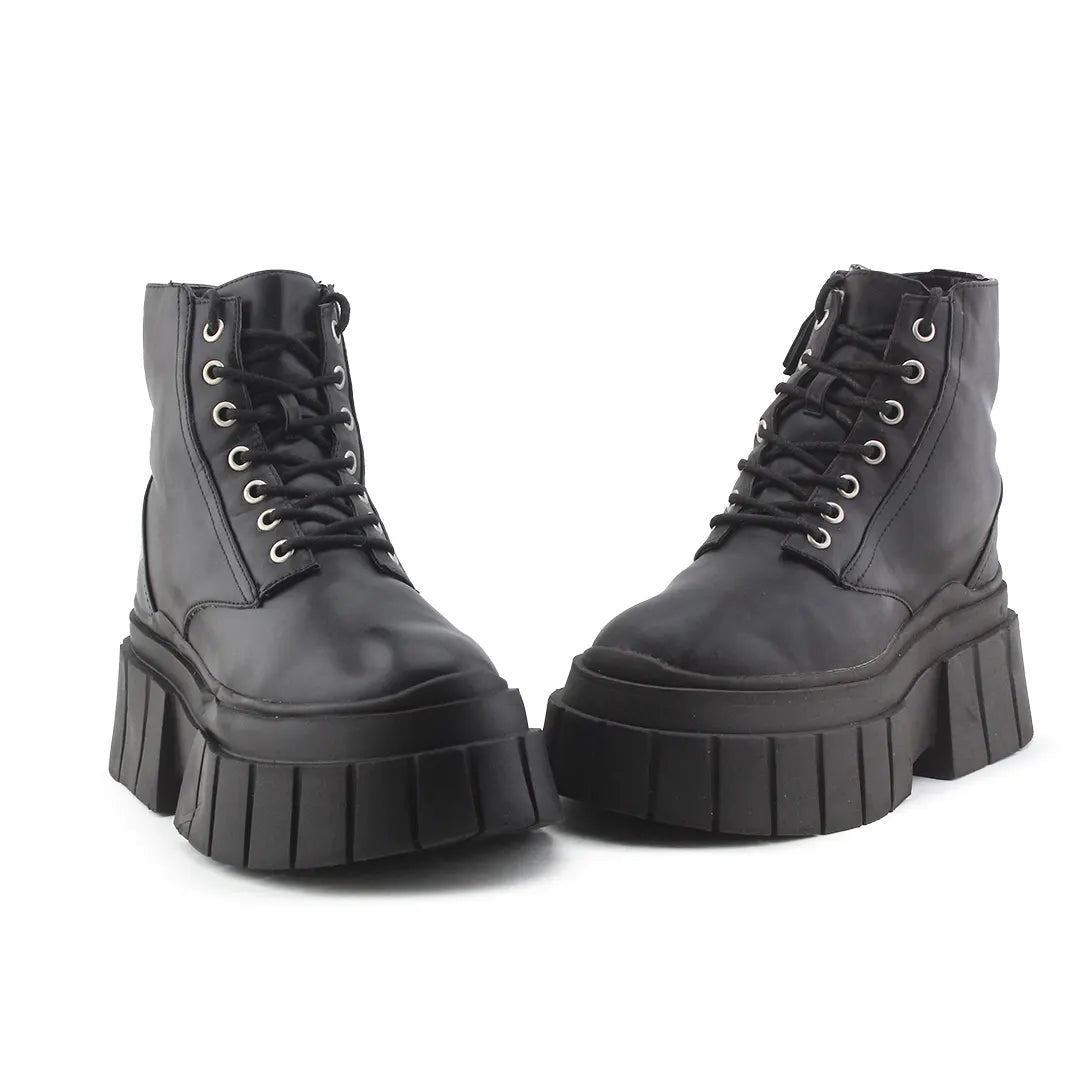 Bershka Zipper Lace Up Ankle Boot | 100% Authentic Leather
