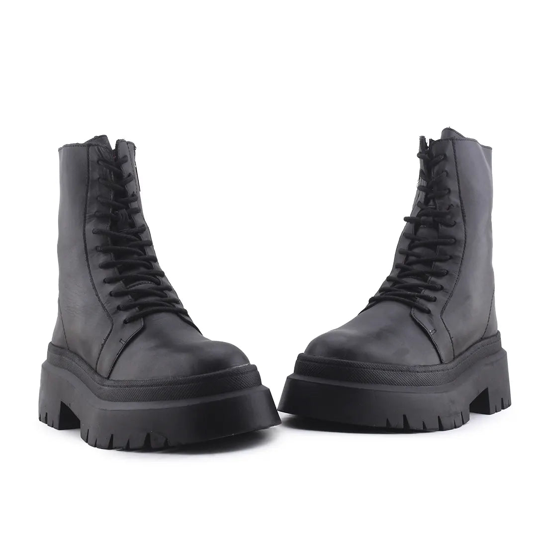 Pull & Bear Zipper Lace Up Ankle Boot | 100% Authentic Leather