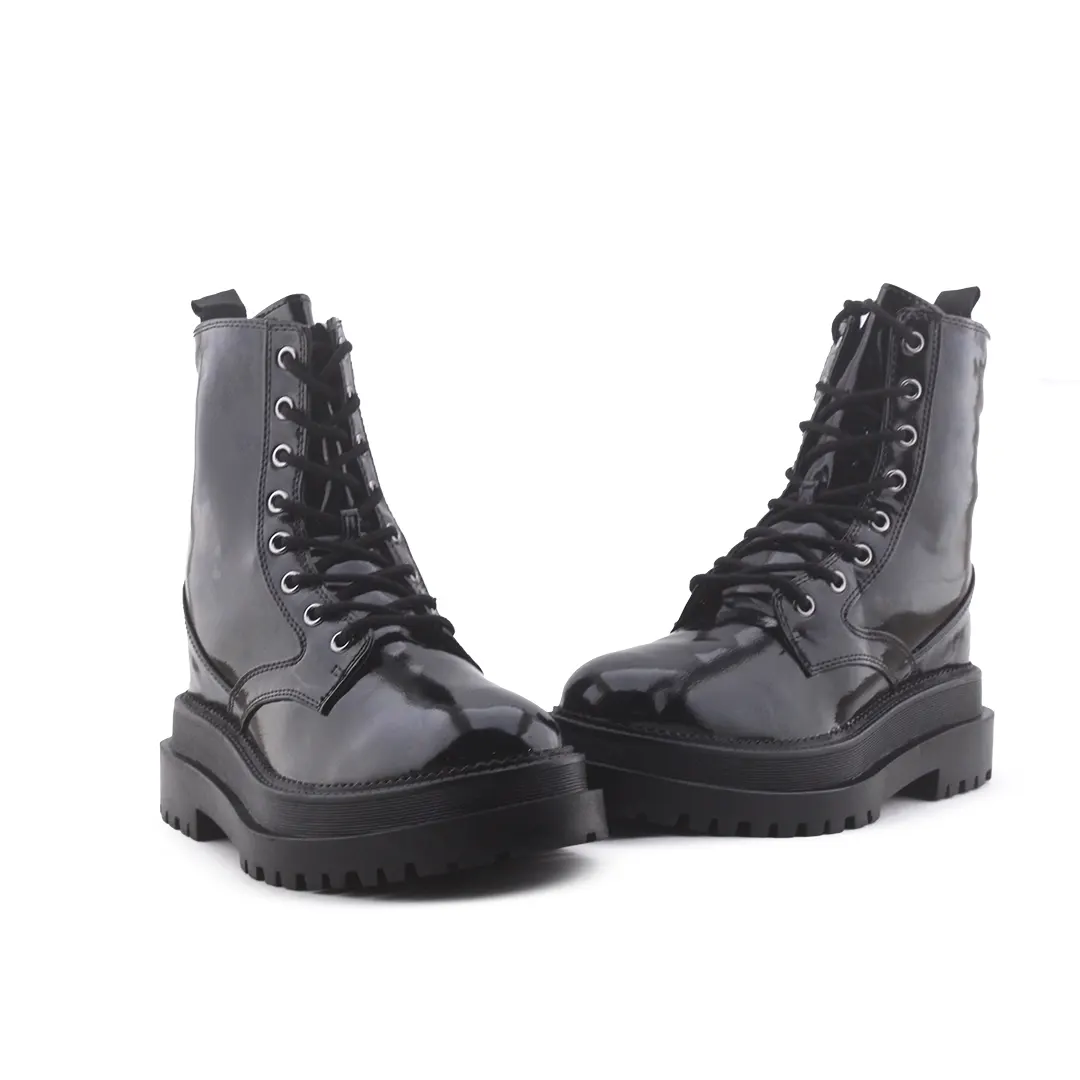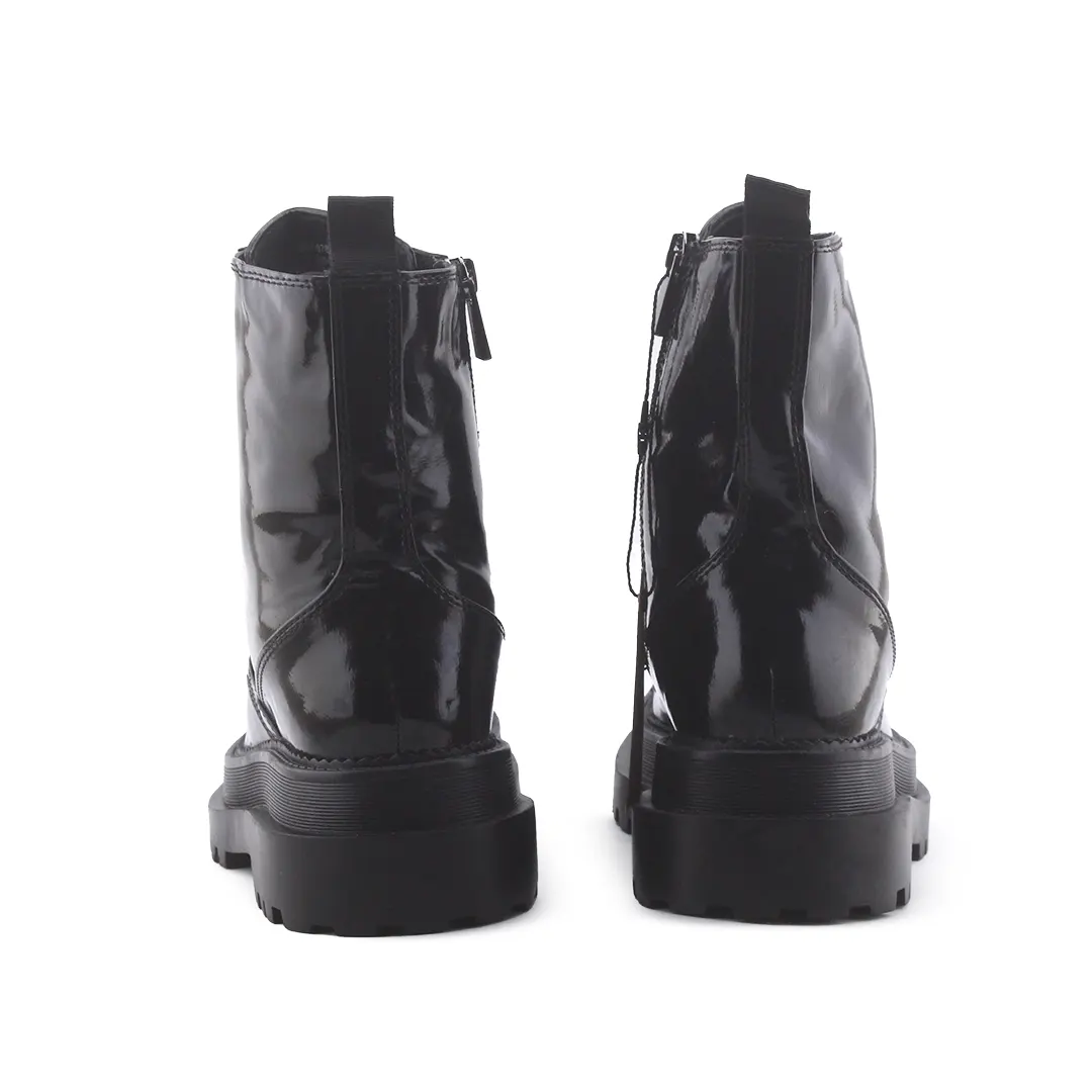 Stradivarius Zipper Lace Up Combat Ankle Boot | 100% Authentic Leather
