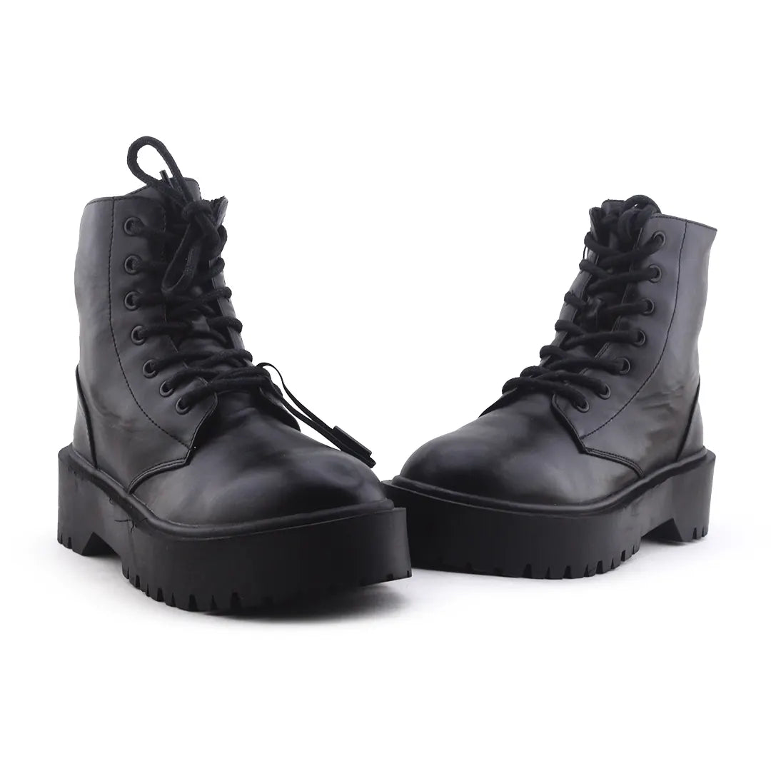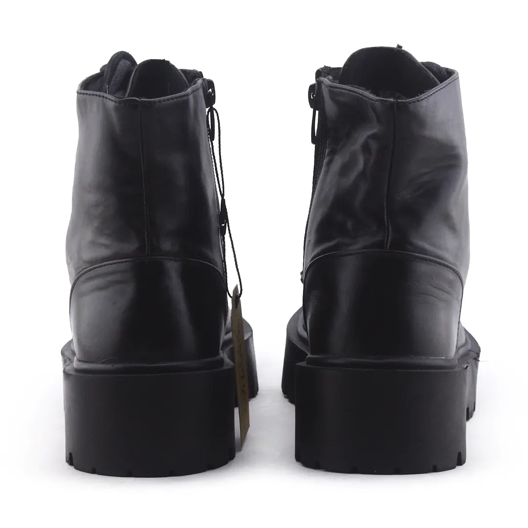 Stradivarius Zipper Laces Combat Ankle Boots | 100% Authetic Leather