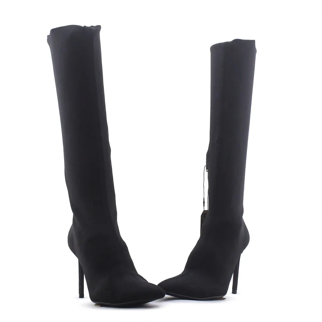 Zara Zipper Textile Thigh High Boot