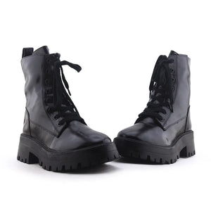 Stradivarius Zipper Laces Combat Ankle Boots | 100% Authentic Leather