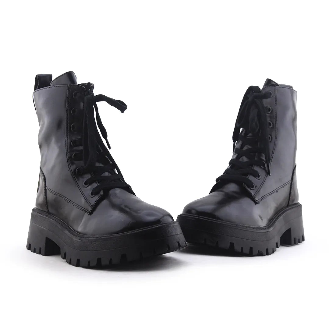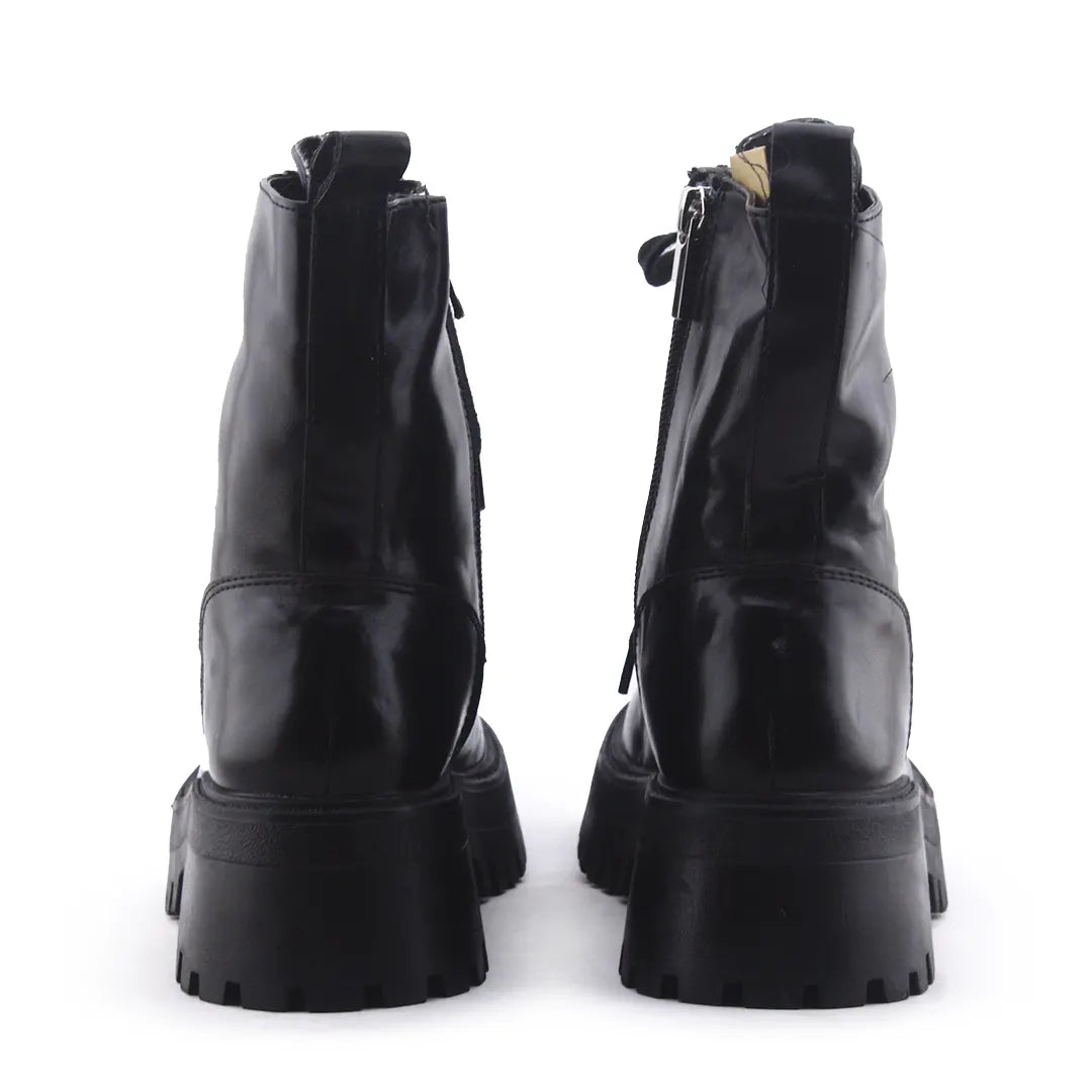 Stradivarius Zipper Laces Combat Ankle Boots | 100% Authetic Leather