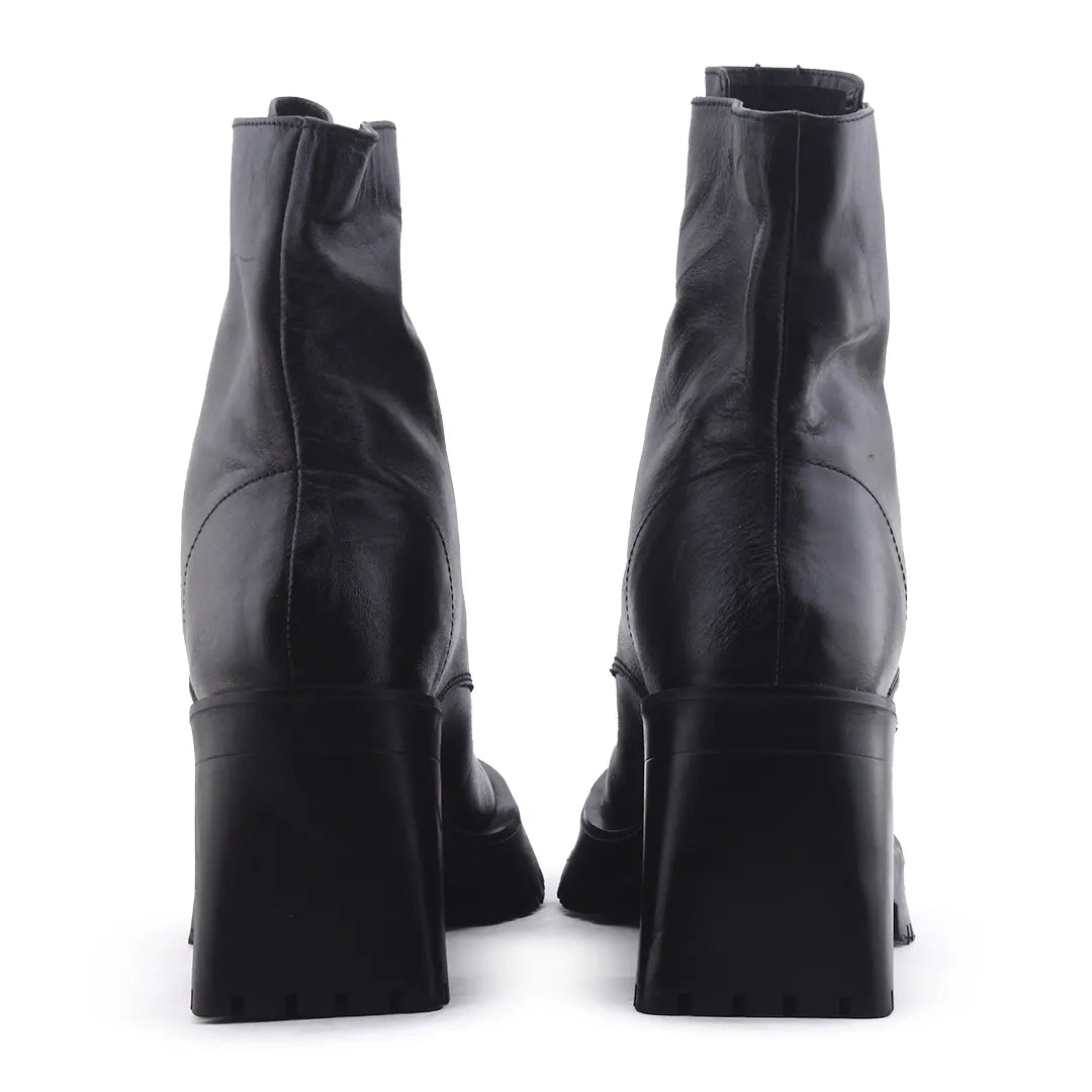 Zara Zipper Block Heels Ankle Boots | 100% Authentic Leather