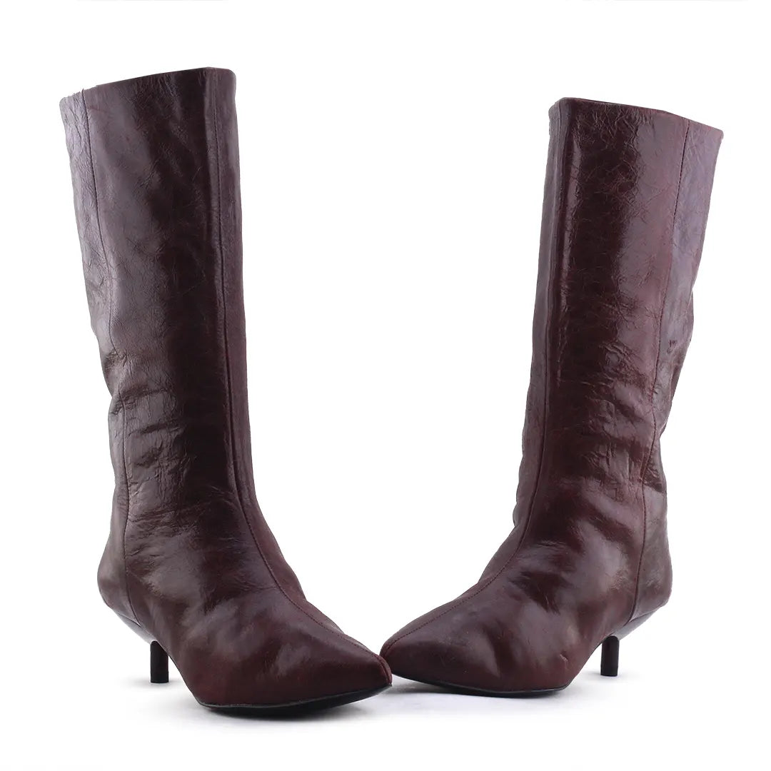 Zara Stilettos Heels Knitted Ankle Boots | 100% Authentic Leather