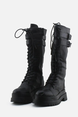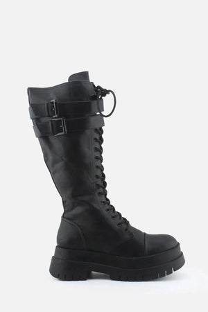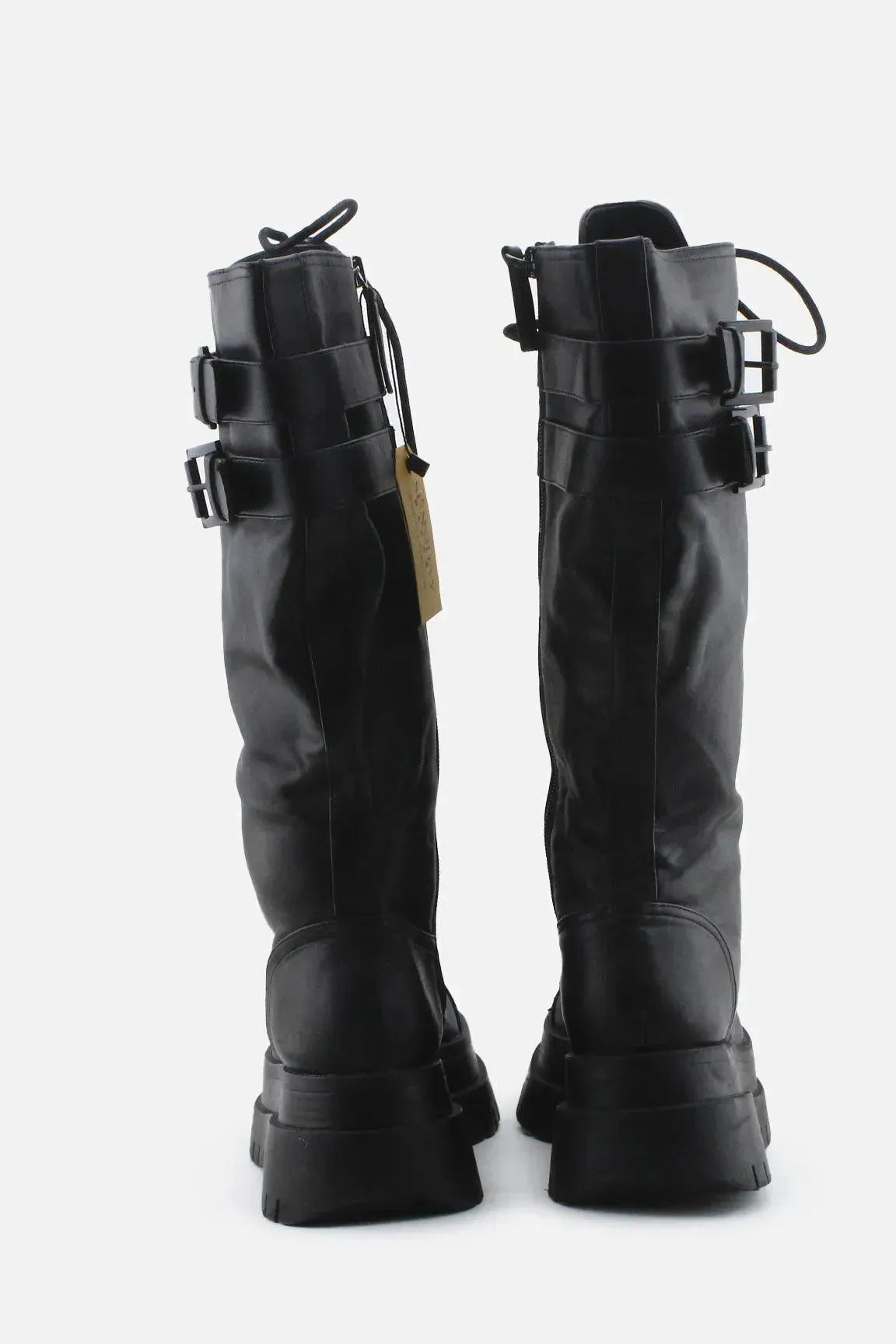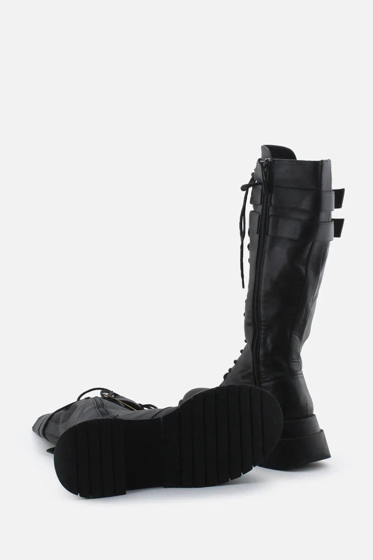 Home Women-Long-Boots Bershka Zipper Laces Buckle Straps Knee High Boot | 100% Authentic Leather