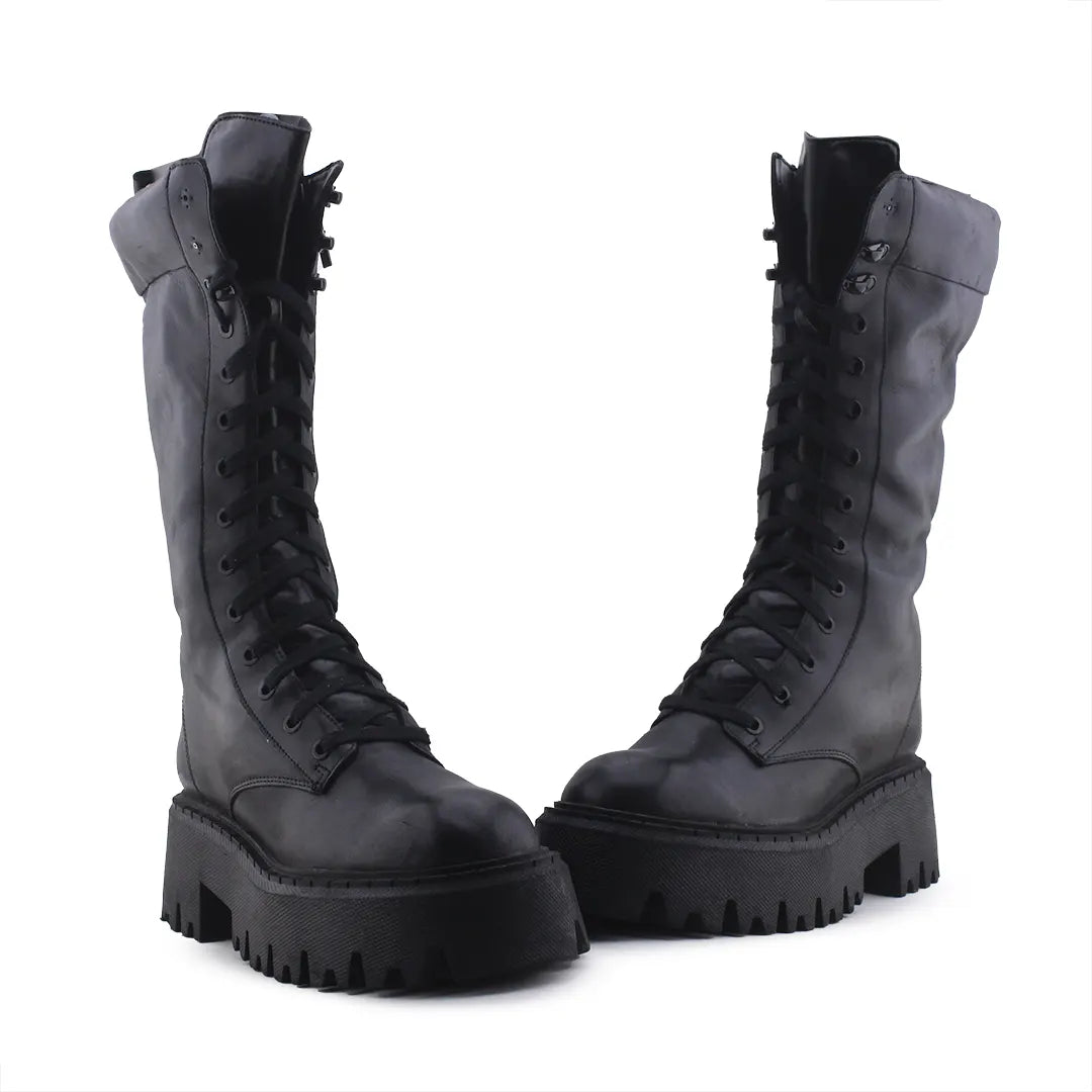 Zara Zipper Lace Up Knee High Boot | 100% Authentic Leather