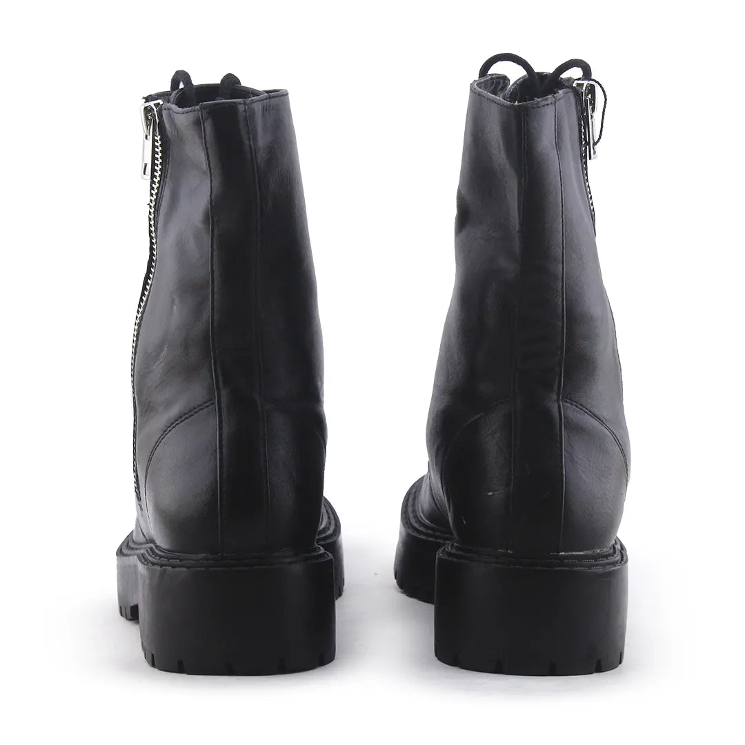 Stradivarius Zipper Laces Combat Ankle Boots | 100% Authetic Leather